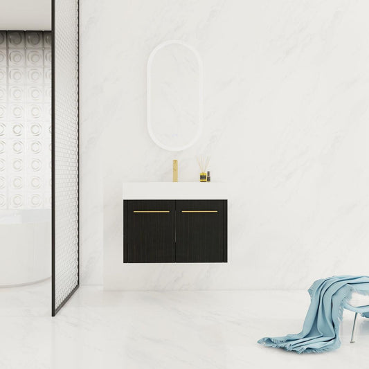 30 Inch Wall-Mounted Bathroom Vanity with Sink, Thick Edged Resin Basin, KD-Package