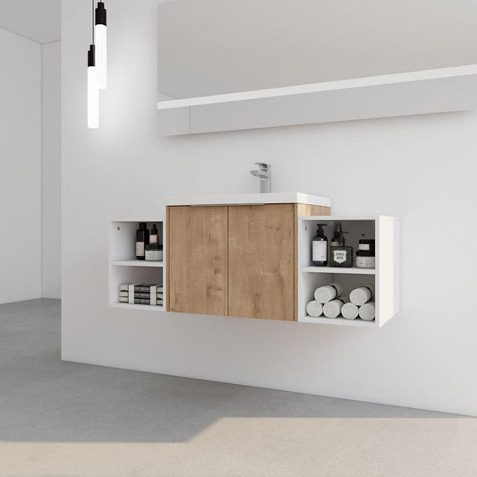 48 Inch Wall-Mounted Bathroom Vanity with Sink, Thick Edged Resin Basin, KD-Package