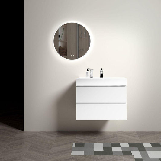Alice 30" White Bathroom Vanity with Sink, Large Storage Wall Mounted Floating Bathroom Vanity for Modern Bathroom, One-Piece White Sink Basin without Drain and Faucet, Pre-assembled