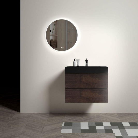 Alice 30" Walnut Bathroom Vanity with Sink, Large Storage Wall Mounted Floating Bathroom Vanity for Modern Bathroom, One-Piece Black Sink Basin without Drain and Faucet, Pre-assembled