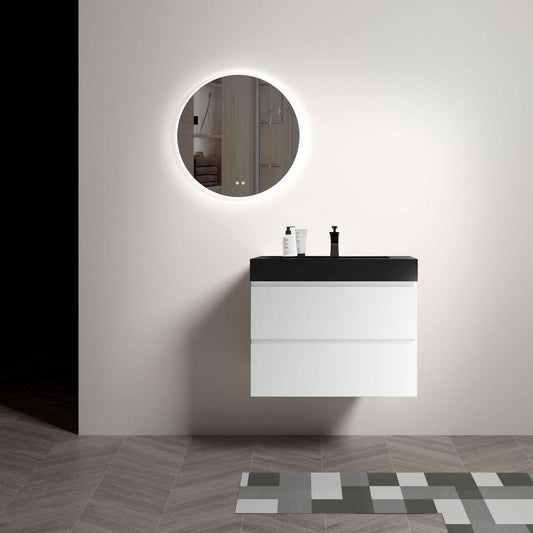 Alice 30" White Bathroom Vanity with Sink, Large Storage Wall Mounted Floating Bathroom Vanity for Modern Bathroom, One-Piece Black Sink Basin without Drain and Faucet, Pre-assembled