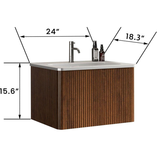 U046-Etna24W-305 Etna 24" Striped Walnut Bathroom Vanity with White Ceramic Sink, Wall Mounted Floating Bathroom Vanity for Modern Bathroom, Pre-assembled