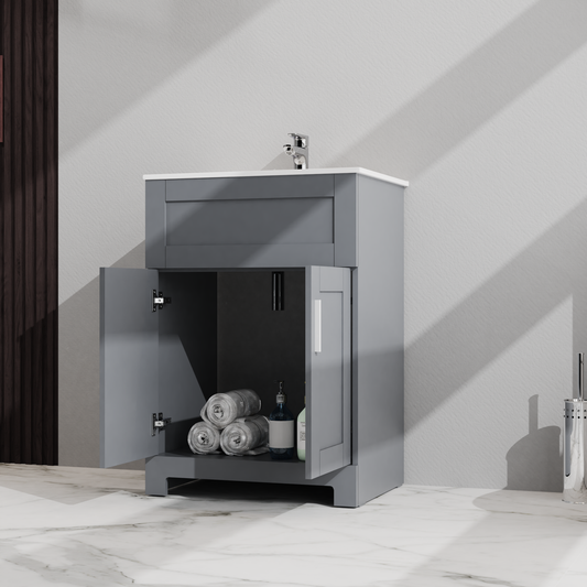 24-Inch Bathroom Vanity Cabinet with Ceramic Sink, 2 Drawers, 1 Door