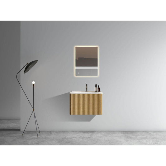 U055-Etna24W-306 Etna 24" Striped Natural Oak Bathroom Vanity with White Ceramic Sink, Wall Mounted Floating Bathroom Vanity for Modern Bathroom, Pre-assembled