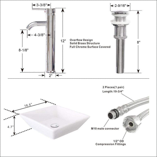 16.5" Square Bathroom Vessel Sink White Porcelain Counter Bowl for Bathroom Vanity