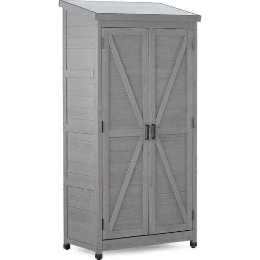 Outdoor Storage Cabinet and Metal Top,Garden Storage Shed,Outdoor 68 Inches Wood Tall Shed for Yard and Patio