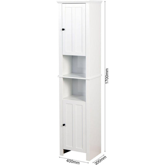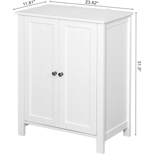 Bathroom Floor Storage Cabinet with Double Door Adjustable Shelf, White