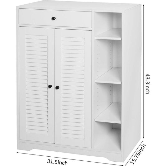 Freestanding Shoe Rack Organizer with 2 Shutter Door, Entryway Narrow Shoe Storage with Adjustable Storage Shelf &Top Drawer, Modern Slim Shoe Cabinet, White