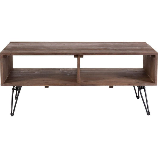 Reclaimed wood Cocktail Table with Open Storage for Living Room, Metal Legs, Foldable, Black/Natural wood Finish