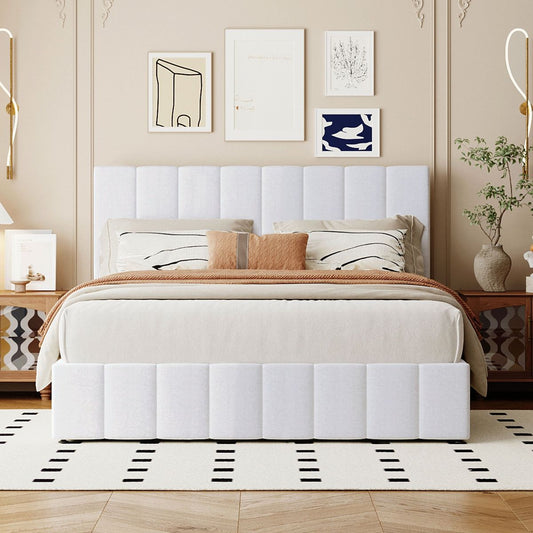 Queen size Upholstered Platform bed with a Hydraulic Storage System - White(OLD SKU: LP000211AAK)