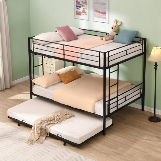 Full Over Full with trundle Metal Bunk Bed , No Box Spring Needed, Easy Assemble