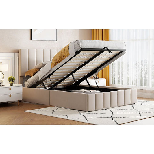 Queen size Upholstered Platform bed with a Hydraulic Storage System - Beige(OLD SKU: LP000211AAA)