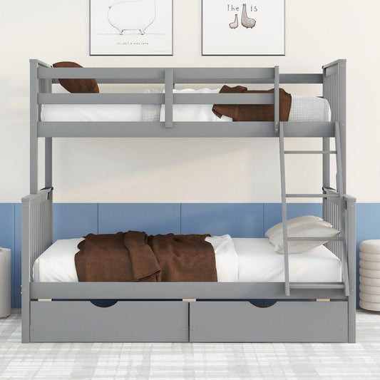 Twin-Over-Full Bunk Bed with Ladders and Two Storage Drawers(Gray){o