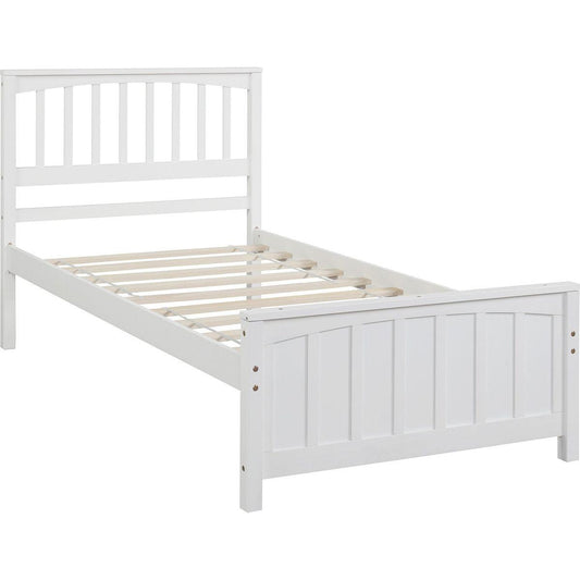 Wood Platform Bed with Headboard and Footboard, Twin (White)