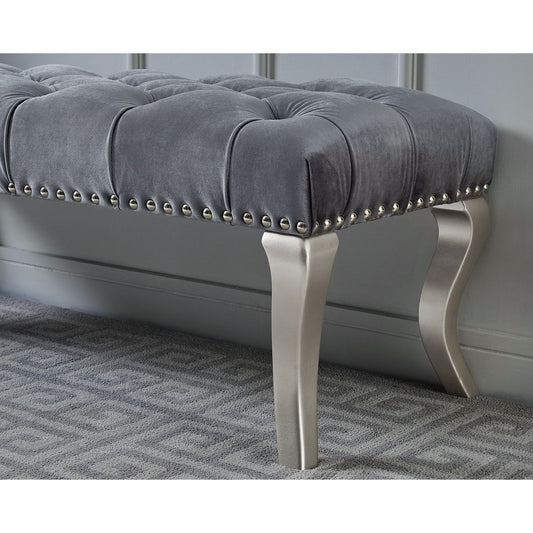 Decor Maxem Tufted Fabric Upholstered Bench Nailhead Trim , Gray