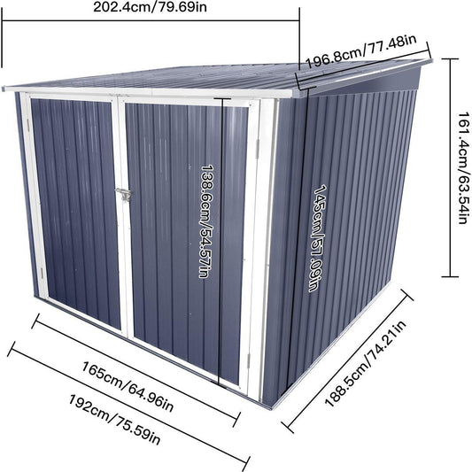 Outdoor Storage Garden Bike Shed 8x6 Feet Apex Roof Dark Grey With Aluminum alloy frame and sliding door
