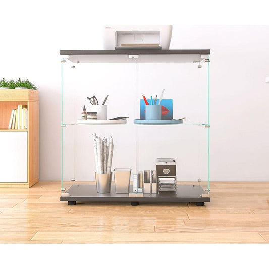 Two-door Glass Display Cabinet 2 Shelves with Door, Floor Standing Curio Bookshelf for Living Room Bedroom Office, 33.35"x31.69"x14.37",Black