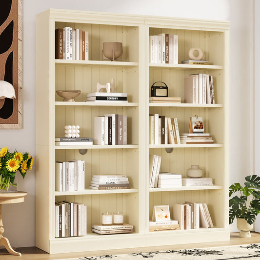 83' Tall Wood Bookcase Suite with light strip ,5-Tier Decor Bookcase Suite with Adjustable Shelves,Storage Organizer,Free Standing Storage Shelves Suite for Living Room,Home Office,Beige and Yellow