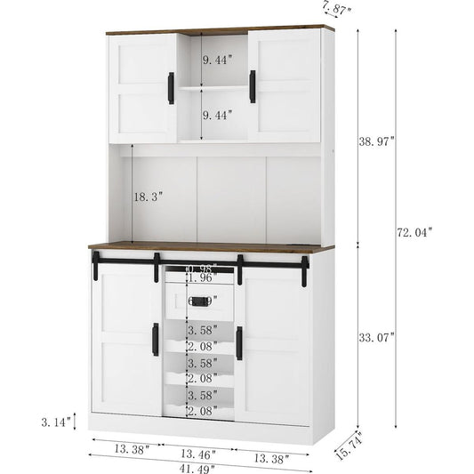 Farmhouse Bar Cabinet with Sliding Barn Door, Large Kitchen BuffetRustic Coffee Bar Sideboard Table,White