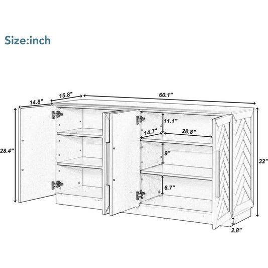 Elegant Sideboard Featuring Curved Bottom Doors with Arched Groove Design in a Stylish Four-Door Layout,Suitable for Living Rooms,Entrance and Study