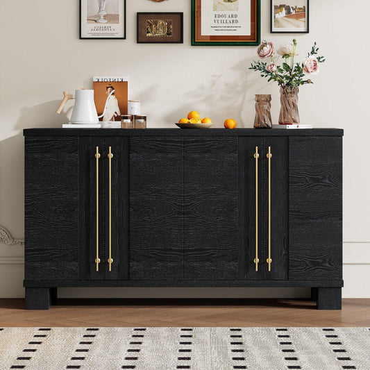 TREXM Sideboard Buffet Cabinet with Storage, Wood Sideboard with Adjustable Shelves and Gold Handles for Kitchen, Dining Room and Living Room (Black)