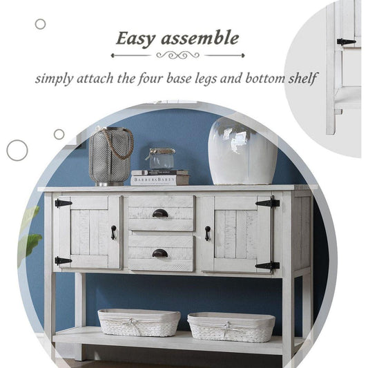 48" Solid Wood Sideboard Console Table with 2 Drawers and Cabinets and Bottom Shelf, Retro Style Storage Dining Buffet Server Cabinet for Living Room Kitchen Dining Room (Antique White