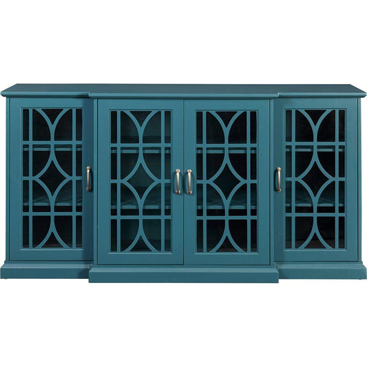 63" TV Stand, Storage Buffet Cabinet, Sideboard with Glass Door and Adjustable Shelves, Console Table for Dining Living Room Cupboard, Teal Blue