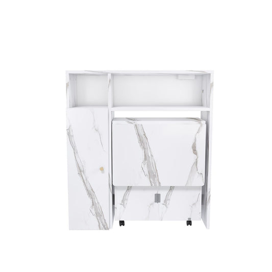 Multifunctional Folding Dining Table with Wall-Mounted Sideboard & Storage, White MDF, Space-Saving Design