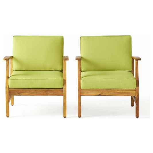 Aston Acacia Wood Outdoor Club Chairs with Cushions - Teak + Dark Gray
