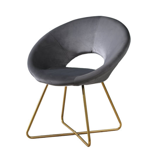 Slatina Gray Silky Velvet Upholstered Accent Chair with Gold Tone Finished Base