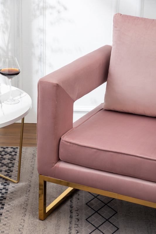 Slatina Pink Silky Velvet Upholstered Accent Chair with Gold Tone Finished Base