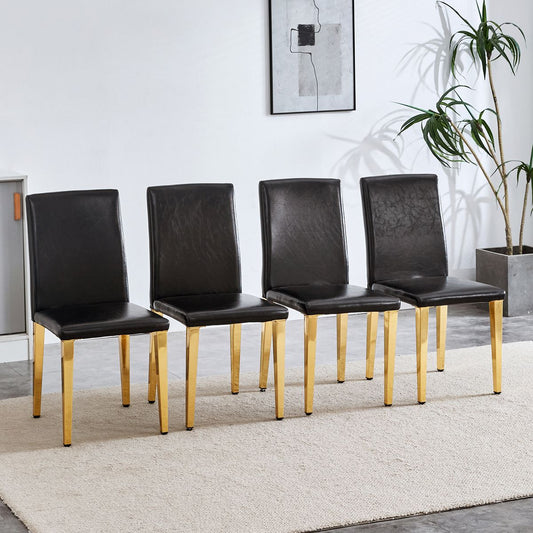 A Set of 4 Black PU Leather Backrest Chairs with Gold Metal Legs - A Perfect Pairing, Ideal for Minimalist and Modern Home Décor Styles, with Product Dimensions of 16.2*18.5*34.6 inches