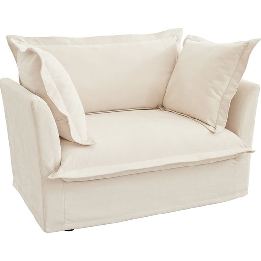 Slip-covered Armchair with 1 Big Back Cushion and 2 Big Toss Pillows, Single Deep Seat Comfy Single Couch Sofa Multiple Large Soft Pillows, Chenille Fabric, Cream