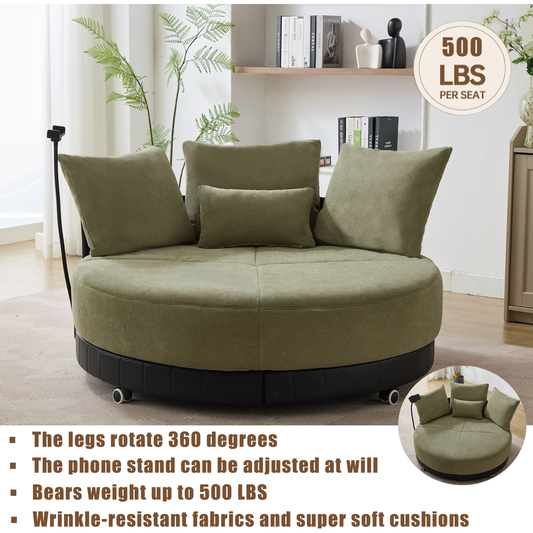 [NEW ARRIVED] [VIDEO PROVIDED]52.75'' Oversized Round Swivel Chair,360° Swivel Chair, Couples chair,Adjustable phone stand,Swivel Chair,Rotating pulley,Polyester(Anti-Wrinkle),Green