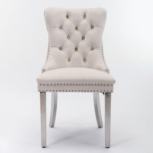 Nikki Collection Modern, High-end Tufted Solid Wood Contemporary Velvet Upholstered Dining Chair with Chrome Stainless Steel Plating Legs, Nailhead Trim, Set of 2eige and Chrome