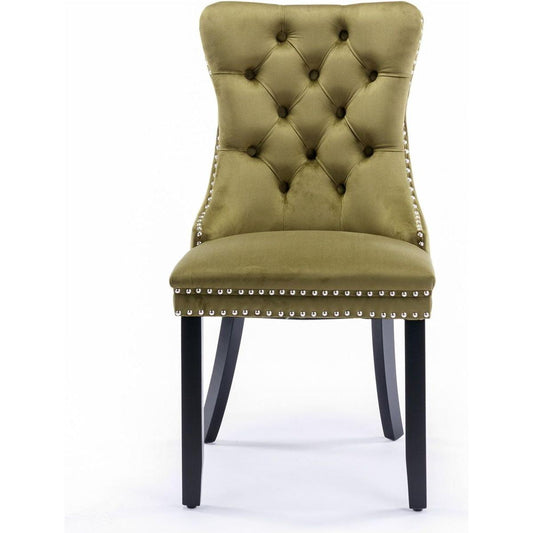 Nikki Collection Modern, High-end Tufted Solid Wood Contemporary Velvet Upholstered Dining Chair with Wood Legs Nailhead Trim 2-Pcs Setlive-Green