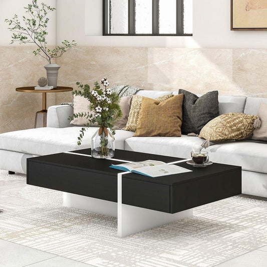 Contemporary Rectangle Design Living Room Furniture, Modern High Gloss Surface Cocktail Table, Center Table for Sofa or Upholstered Chairs, 45.2x25.5x13.7in, Black
