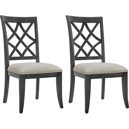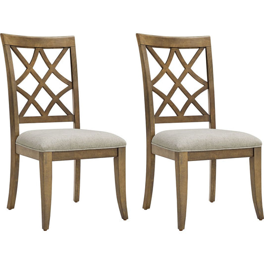 French Style Solid Wood Frame Antique Painting Linen Fabric Back Dining Chair,Set of 2,Beige