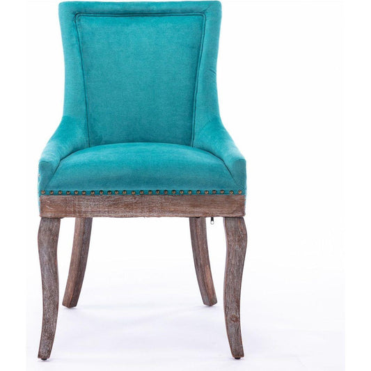 Ultra Side Dining Chair, Thickened fabric chairs with neutrally toned solid wood legs, Bronze nail head, Set of 2, Blue