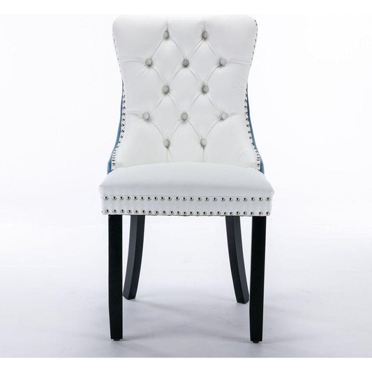 Nikki Collection Modern, High-end Tufted Solid Wood Contemporary PU and Velvet Upholstered Dining Chair with Wood Legs Nailhead Trim 2-Pcs Set, White+Light Blue