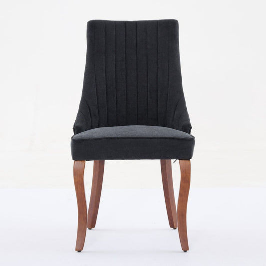 Rayon Cloth Flocking Linen Dining Chairs Channel Kitchen Dinner Chair Comfy Fabric Upholstered Accent Chair for Dining Room with Curved Solid Wood Legs,Set of 2 (Black), SW1847BK