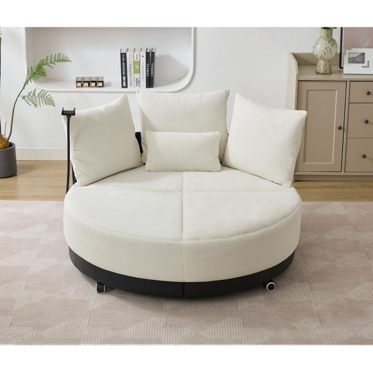 [NEW ARRIVED] [VIDEO PROVIDED]52.75'' Oversized Round Swivel Chair,360° Swivel Chair, Couples chair,Adjustable phone stand,Swivel Chair,Rotating pulley,Polyester(Anti-Wrinkle),Beige