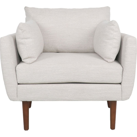 Slip-covered Armchair with 1 Big Back Cushion and 2 Big Toss Pillows, Single Deep Seat Comfy Single Couch Sofa Multiple Large Soft Pillows, Chenille Fabric, Cream