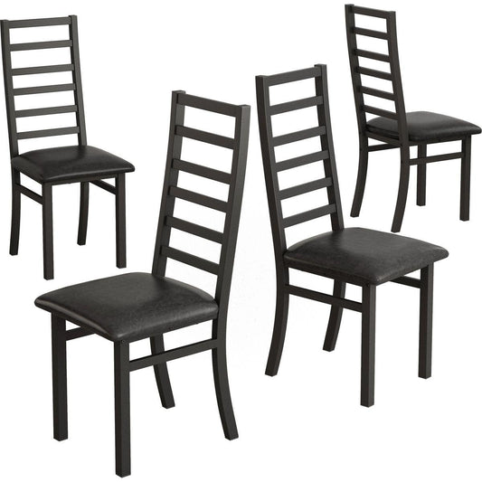 Metal Dining Chairs Set of 4, Steel Legs and PU Leather Seats, High Back Armless Dining Chairs, for Kitchen, Living Room, Black