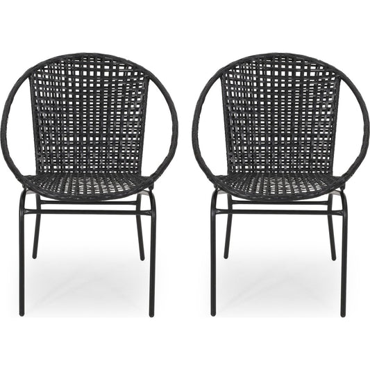 Metal Dining Chairs Set of 2, Steel Legs and PU Leather Seats, High Back Armless Dining Chairs, for Kitchen, Living Room, Black