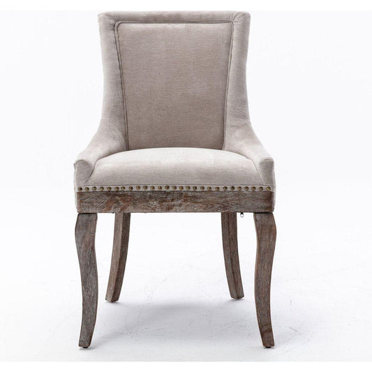 French Style Solid Wood Frame Antique Painting,Hand-pulled buckle decoration Velvet artificial leather Dining Chair with Nailhead Trim, Wood Legs,Steel Spring inner,Set of 2,Beige