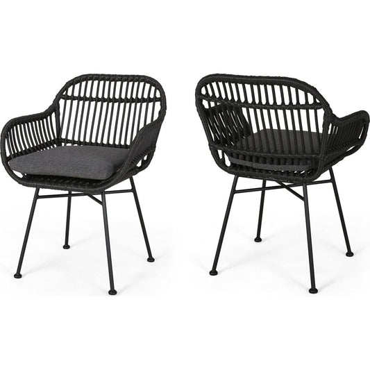 HAMPTON WOOD AND WICKER DINING CHAIR(SET OF 2 )