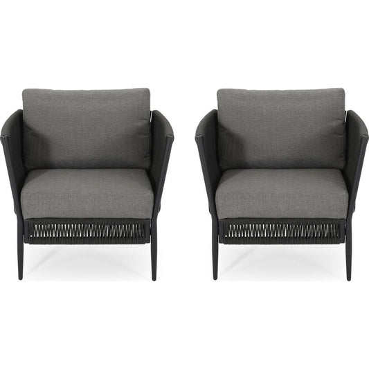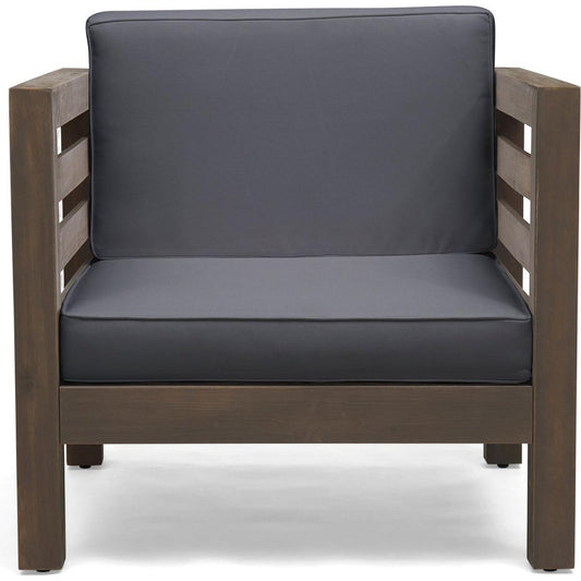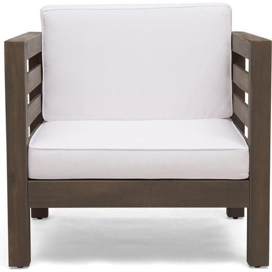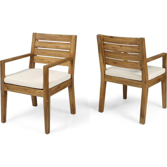 (Set of 2) Outdoor Acacia Wood Club Chairs with Cushions, Teak+Beige, 27.75"D x 32"W x 27.75"H