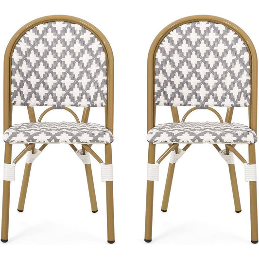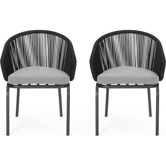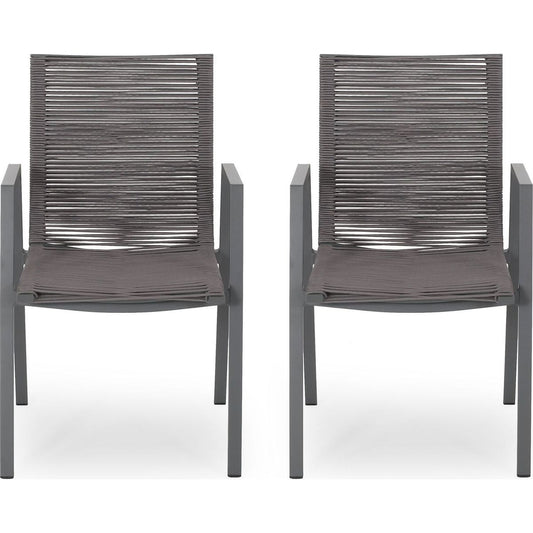 Outdoor Modern Aluminum Dining Chair with Rope Seat (Set of 2), Gray and Dark Gray