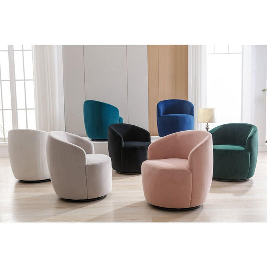 Velvet Fabric Swivel Accent Armchair Barrel Chair With Black Powder Coating Metal Ring,Gray
